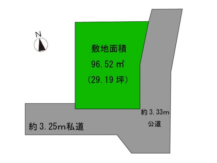 東側約3.33m公道・南側約3.25m私道