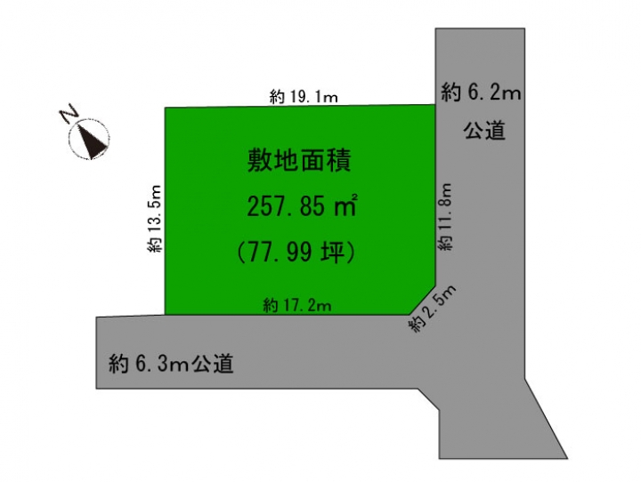 南西側約6.3m公道・東南側約6.2m公道